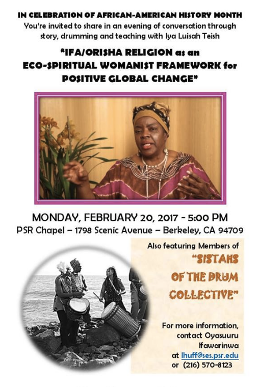 IFA/ORISHA RELIGION as an ECO-SPIRITUAL WOMANIST FRAMEWORK for POSITIVE GLOBAL CHANGE Expressed through Story, Conversation, Drumming and Learning